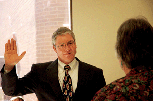 Glen Bailey took his oath of office as District 1 county commissioner as his family, friends and other elected officials looked on.