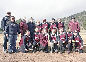 The Troy softball team stands for a team picture after sweeping a doubleheader against Bonners Ferry. The Lady Trojans, a young, scrappy squad, have sights set on divisionals and maybe even state for the first time in program history.