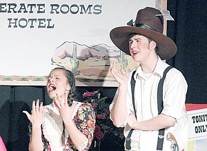 Alanah True-Silva as Amy Sweet, and Spencer Swimley as Sheriff Johnny Straightshooter in Troy High School's production of "Sundown Alley."
