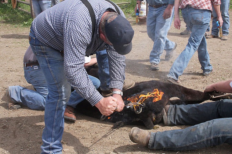 John Holland brands one of his calves Saturday afternoon at his annual calf branding. Overall, the Hollands branded 49 calves in a little under two hours and also vaccinated them as they went. Holland is still waiting on one late-season calf to be born.