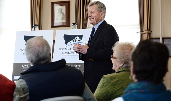 U.S. Sen. Max Baucus, D-Mont., addresses the Kalispell Chamber of Commerce Thursday morning.