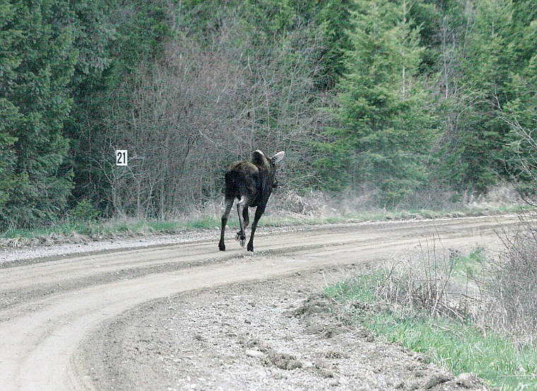 Reporter Colin Murphey managed to capture a quick shot of this moose before it disappeared into the woods. Colin was up Thompson River covering a story on the 6th grade camp-out when she surprised him.