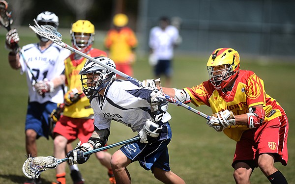 Flathead midfielder David Rizzolo, 17, approaches the goal during the first half of the game against Hellgate on Saturday afternoon, May 4, in Whitefish. Rizzolo's goal brought the score to 3-3. (Brenda Ahearn/Daily Inter Lake)