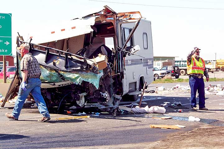 The motor home, totaled in the collision, blocked one lane of state Route 17. Debris and personal items from the vehicle were scattered throughout the intersection. Traffic was diverted to one lane while crews cleaned up the debris and the motor home was towed from the area. Bielman was transported for treatment to Samaritan Hospital in Moses Lake.