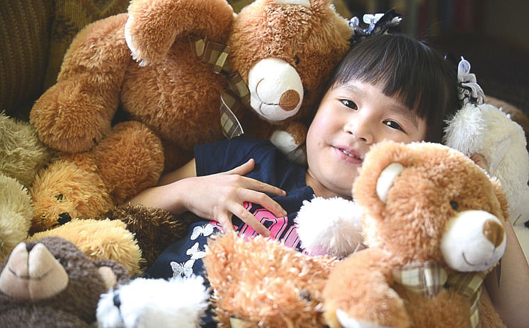 Emma Anderson is surrounded by teddy bears at her home in Kalispell.