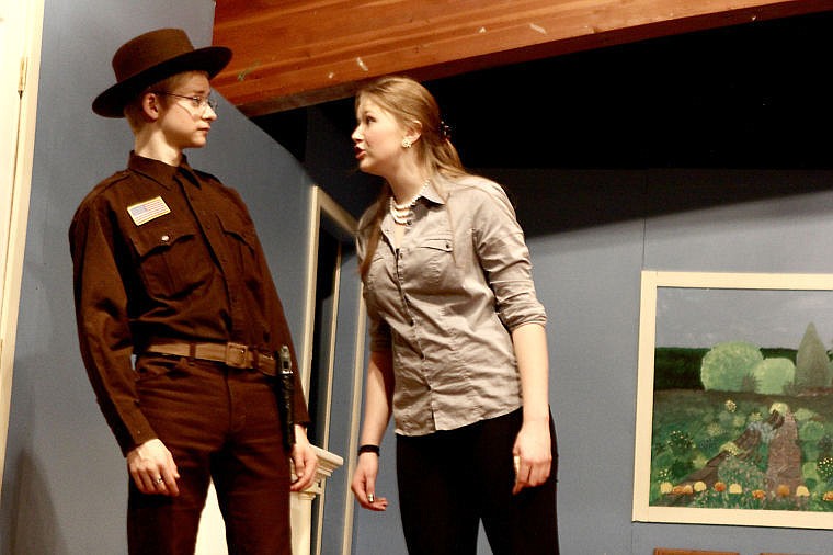 Leonna Crump (played by Hannah Hollenback) confronts Officer Frank Doonan (played by Randall Johnson).