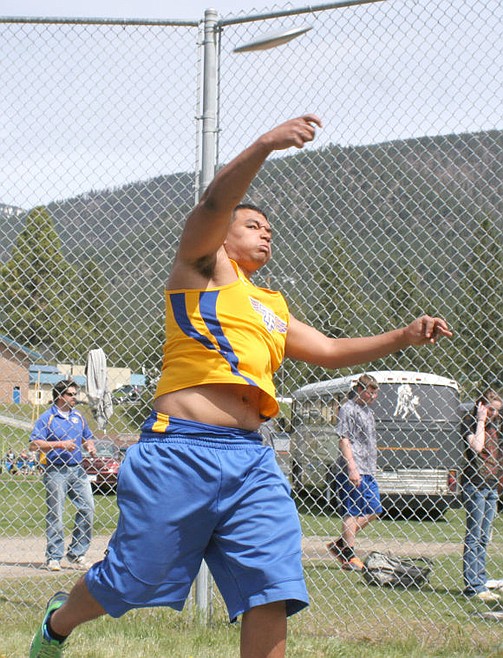 Braxton Eubanks hurls the discus for the Bluehawks during the Sanders County meet held at Thompson Falls on Thursday.