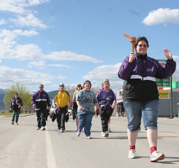 Members of the Little Bitterroot Special Olympics team parade down Highway 200 through Plains on Saturday as part of the Law Enforcement Torch Run.