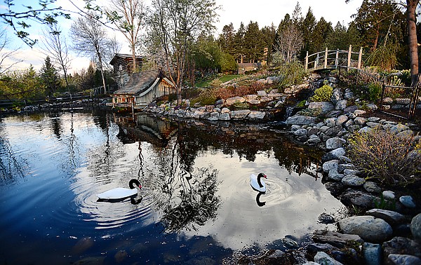 Two black-necked swans float in one of the east ponds at Bibler Gardens west of Kalispell at dawn May 9. The gardens are opening for two weekends beginning Saturday and Sunday; they will also be open May 18 and 19. For tour times and tickets, visit www.biblergardens.org or call Flathead Valley Community College at 756-3632.