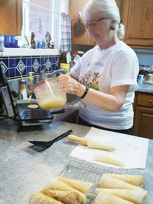Pat Phillips makes delicate krumkaka cones. Norwegian delicacies will be for sale Saturday during "A Taste of Norway" at Bethlehem Lutheran Church in Kalispell.