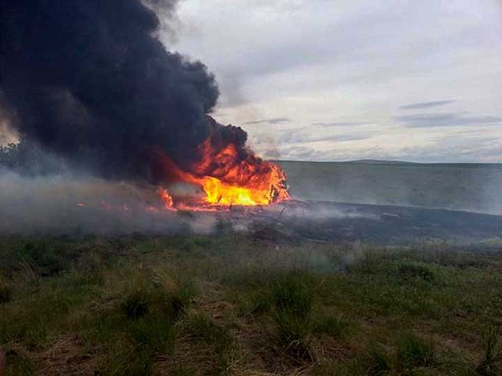 It started about 1:30 p.m. Sunday, Grant County Fire District 13 and the Ephrata Fire Department responded to a three-acre wildland fire on Road 19 Northwest. According to a District 13 statement, an older storage building was fully engulfed when they arrived and the fire spread to a second building containing several barrels of an unknown substance. The second building was allowed to burn because the barrels began exploding. Fire crews were on scene for several hours.