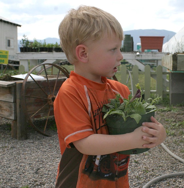 Syris holds a flower during the Lynch Creek Nursery's Mother's Day event on both Friday and Saturday where kids were able to plant flowers for their mothers.