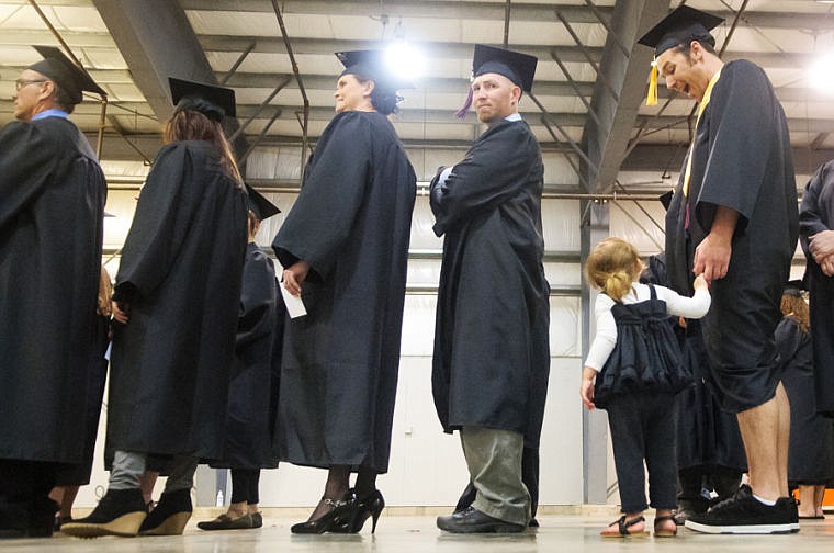 Jackson Hokanson, right, jokes with his daughter Mikayla, 2, Friday night before the Flathead Valley Community College commencement ceremony in the Trade Center at the Flathead County Fairgrounds. Hokanson graduated with an Associate of Arts in Substance Abuse Counseling. May 17, 2013 in Kalispell, Montana. (Patrick Cote/Daily Inter Lake)