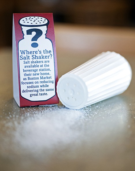 Some restaurants already are taking steps. The Boston Market chain, for instance, has begun reducing sodium in its most-sold items by about 20 percent - and removed salt shakers from the restaurant tables. "Where's the salt shaker?" read signs sitting next to the pepper that explain the chain's move to reduce sodium and advise that customers who really want an extra pinch will have to get up to find some at the counter.