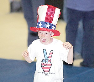 Marcus Hermes, 7, hams it up prior to Morrison Elementary's "Star Spangled" Spring Concert Tuesday at the Troy Activity Center.