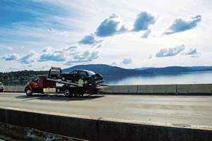 Traffic slowed to a trickle for an hour and half while Idaho State Police dealt with two separate accidents in the middle of the Long Bridge at 3:20 p.m. Cars stacked past the bridge and continued to back up into downtown Sandpoint until state troopers were able to get all damaged vehicles clear of the bridge.