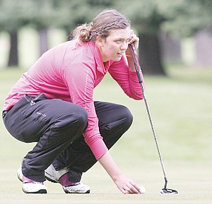 Jackie Mee prepares to putt on No. 6, a par 4.