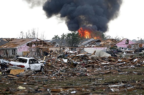 MOORE, Okla. (AP) — A monstrous tornado at least a half-mile wide roared through the Oklahoma City suburbs Monday, flattening entire neighborhoods and destroying an elementary school with a direct blow as children and teachers huddled against winds up to 200 mph.