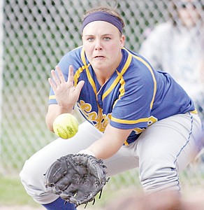First baseman Dayln Germany with the third out top of third inning vs. Columbia Falls 5-16-13.