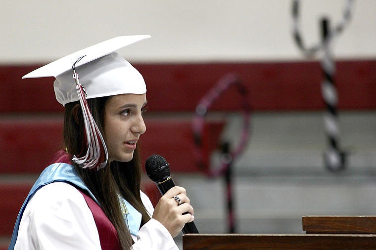 Alberton Valedictorian Emma Wooldridge addresses her class and attendees at the commencement.