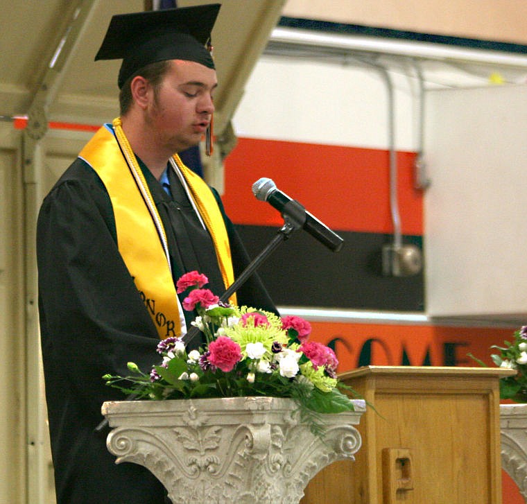 Valedictorian Alex Hagerman delivers his speech to the audience and the class of 2013 on Sunday.