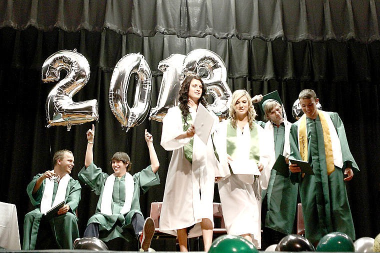 The graduates celebrate after receiving their diplomas during Friday's ceremony.