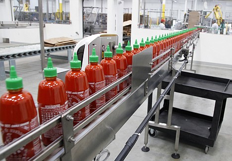 The company, which produces Sriracha and two other popular sauces, says it grinds up about 100 million pounds of the hottest California-grown hybrid jalapeno peppers it can find. The peppers are mixed with garlic, vinegar, salt and sugar, with the resulting fumes sucked through a filtration system and out through the roof.