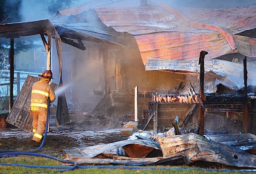 The structure was completely engulfed, according to scanner reports. The Columbia Falls Fire Department responded to the scene. Fire Chief Rick Hagen said the structure was a total loss. More than a dozen firefighters responded, including an engine from Whitefish and an additional water tender from Evergreen.