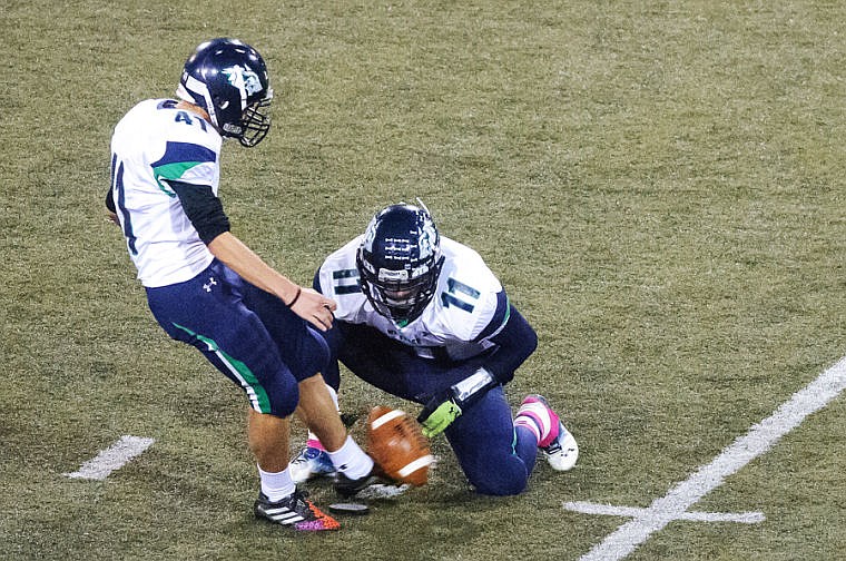 Brandon Purdy (41) kicks an extra point Friday night during Glacier's 59-41 victory over Missoula Sentinel at Washington-Grizzly Stadium in Missoula. Oct. 11, 2013 in Missoula, Montana. (Patrick Cote/Daily Inter Lake)