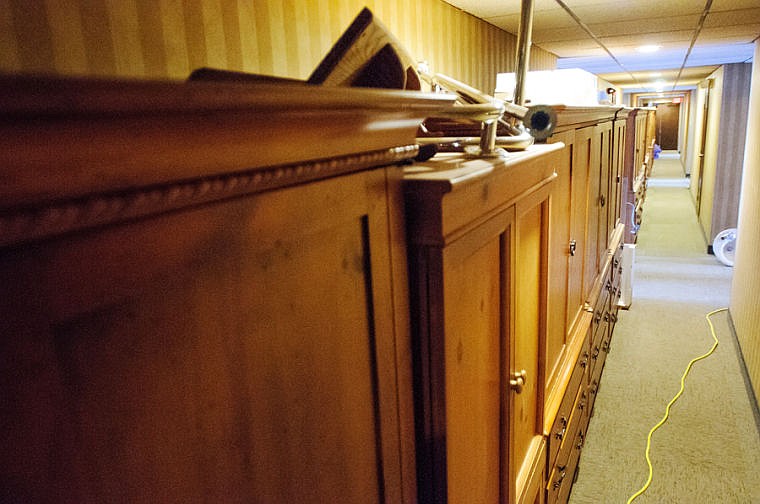 Various pieces of furniture fill the hallway while renovation work is done Wednesday after noon at the Outlaw Hotel and Convention Center in Kalispell. Nov. 6, 2013 in Kalispell, Montana. (Patrick Cote/Daily Inter Lake)