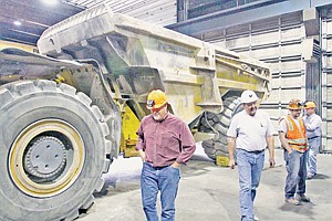 Tim Lindsay, left, during mine tour Aug. 24, 2012.