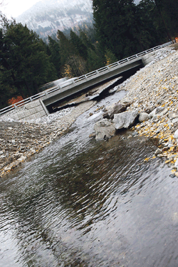The construction method also aided efforts to mitigate impacts to threatened bull trout and kokanee. A fisheries biologist was brought in as part of the contract and there was a seven-week environmental window to do in-stream work for the project.
