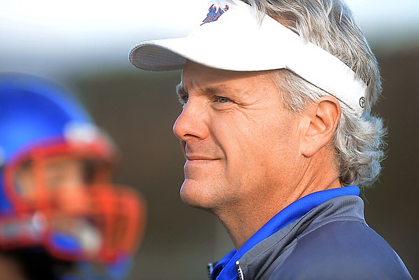 Bigfork Head Coach Todd Emslie watches the Class B Football Playoffs Quarterfinals game between Bigfork and Baker on Saturday, November 9. Bigfork lost the game 34 to 28. (Brenda Ahearn/Daily Inter Lake)