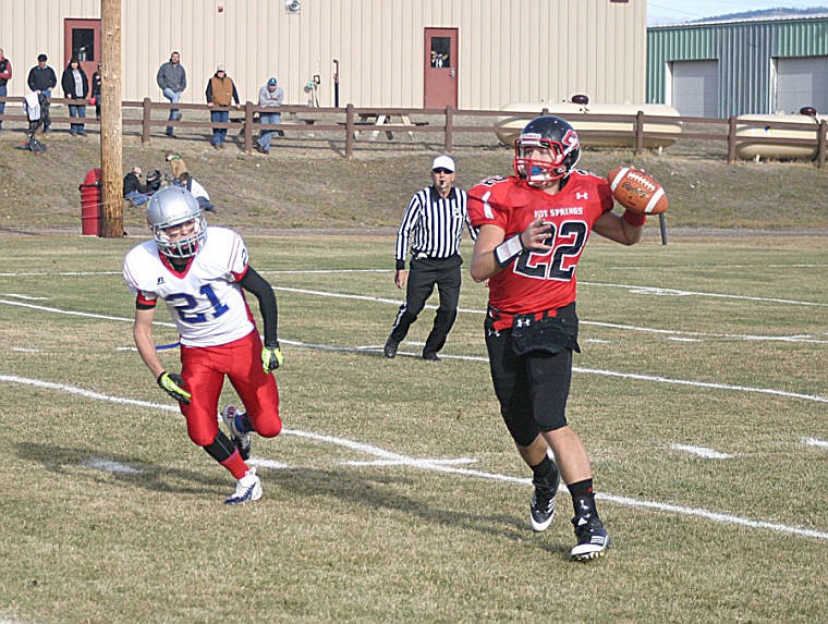 Quarterback Tanner Hoff avoids pressure from the Bearcat defender to get a pass away. DGS Head Coach called Hoff the best quarterback he has ever played against.