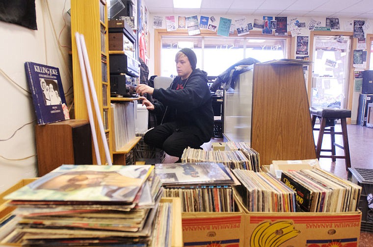 Connor Crevier adjusts the volume of the stereo Wednesday afternoon at Old School Records. Nov. 13, 2013 in Kalispell, Montana. (Patrick Cote/Daily Inter Lake)