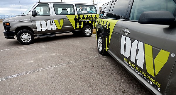 Two of the three new DAV vans on Friday, November 15, at the National Guard Armory north of Kalispell. The vans have the newly designed logo. (Brenda Ahearn/Daily Inter Lake)