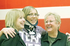 Tracee Peterson takes a moment for a photo op with cousin, Michelle Hanson, left, and aunt, Linda Hanson right.