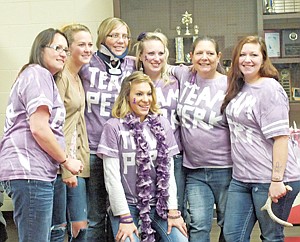 Tracee Peterson poses with a few of her co-workers from Main Street Perk with Jada Schnetter, left, Makaylin Randall, Tracee, Hailey Peterson, Ronda Colgan, Cathy McCann and Jamie McCann.
