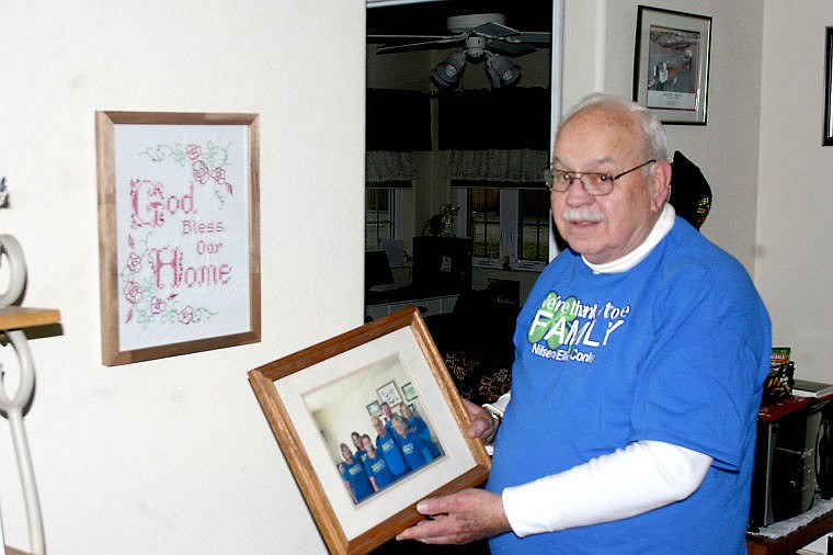 Johan Nilsen holds up a picture from his birth family's visit. Nilsen was put up for adoption at birth, but earlier this year he was reunited with his birth family after 77 years.