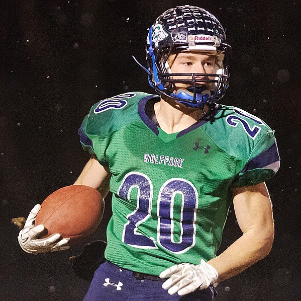 Evan Epperly runs the ball Friday night during Glacier's 51-7 victory over C.M. Russell in the Class AA semifinal playoff game at Legends Stadium. Nov. 15, 2013 in Kalispell, Montana. (Patrick Cote/Daily Inter Lake)