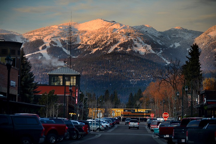 The last rays of sunset reflect brightly off Big Mountain on Thursday evening, November 21, in Whitefish.