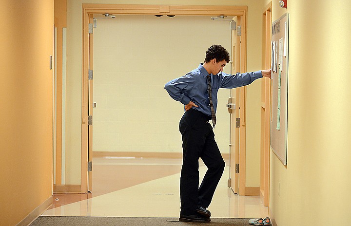 Miguel Kennard of Stevensville waits for the posting of scores on Saturday, November 23, at Glacier High School. (Brenda Ahearn/Daily Inter Lake)