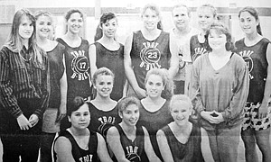 State Tourney Bound TroyÕs girls varsity basketball members are top row: Christina Quinn, left, Beth Prieve, Rezing Burrell, Wendi Winslow, Jennifer Williams, Don Myers, Jaime Volkmann, Whitney Stone and Catie McElmurry. Bottom row: Amy Winslow, left, Shana Lippert, Carmin Myers, Sarah Bain and Audra Brown. Photo from the Dec. 1, 1993, files of The Western News.