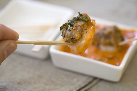 Wrapping shrimp around a nugget of sausage was an idea he talked about in his book, "Bruce Aidells' Complete Sausage Book." I was amazed the first time I made his recipe. The two proteins meld wonderfully when baked. This is such an impressive trick and looks so clever, it makes the perfect appetizer or hors d'oeuvres for a holiday party.