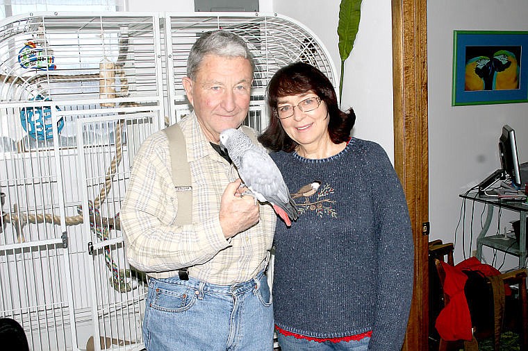 Jim and Alice Straight, with parrot Alphie, recently opened Alphie's - a combination used car dealership and second-hand store. The Straights came to Superior to retire but decided to run a business again after a year.