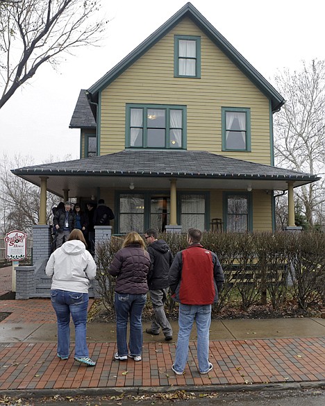 At "A Christmas Story" house overlooking humming steel mills, visitors can re-enact movie scenes including ducking under the 1940s-style kitchen sink or looking out the back door where Ralphie trudged through the faux snow.