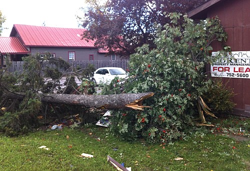 She hit the curb on the east side of the street then swerved to the west before colliding head-on with a tree and sign for the Chair 3 apartments. The tree was snapped at its base and the vehicle came to rest in front of the Hunter and Co. store.