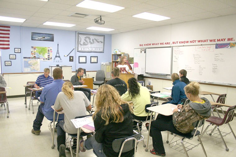 Vicki Nytes prepares her senior United States government class for their upcoming candidate debate.