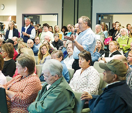 A standing-room-only crowd listened to Montana Insurance Commissioner Monica Lindeen answer questions about Obamacare, also known as the Affordable Care Act, at Kalispell Regional Medical Center on Oct. 2.