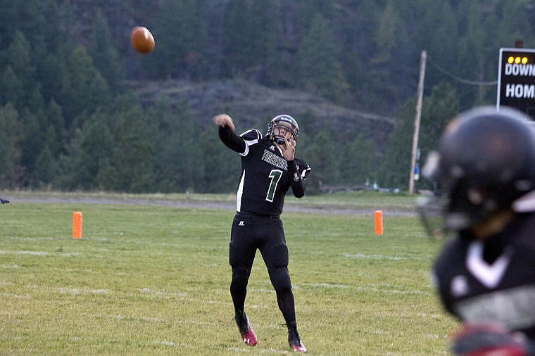 Quarterback Jack Lehl throws a pass down the field during Alberton's homecoming game.